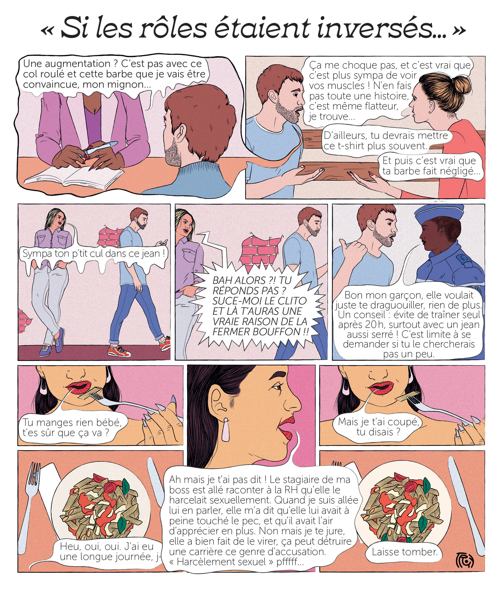 I was responsible for producing and drawing a comic strip about double standards for the book 'Ceci n'est pas un livre sur le genre' by Morgan N. Lucas.